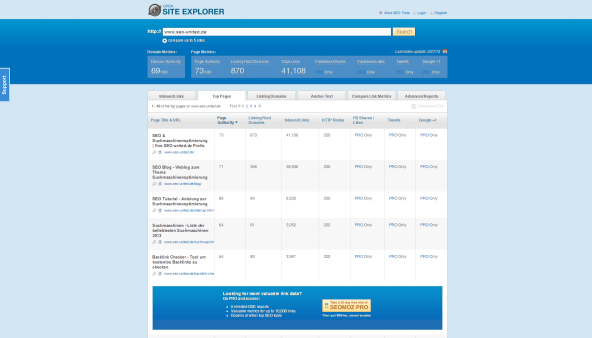 Empfohlene kostenlose SEO-Index und Ranking Tools: