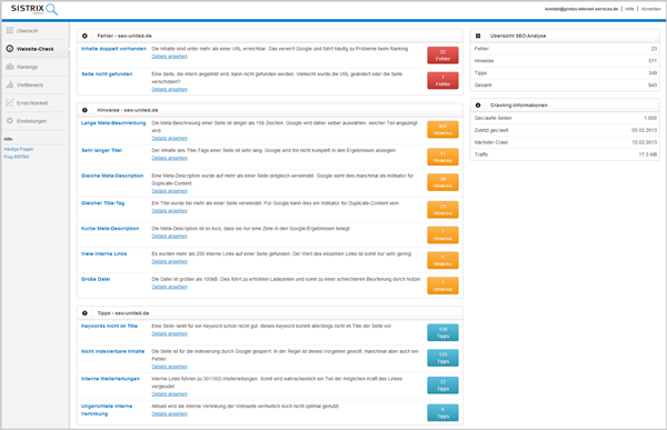 Dienen zur Analyse und Bewertung verschiedener OnPage Kriterien einer Seite.